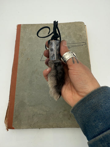•hang it from anywhere with leather cord {on a bag, from your rear view mirror}
