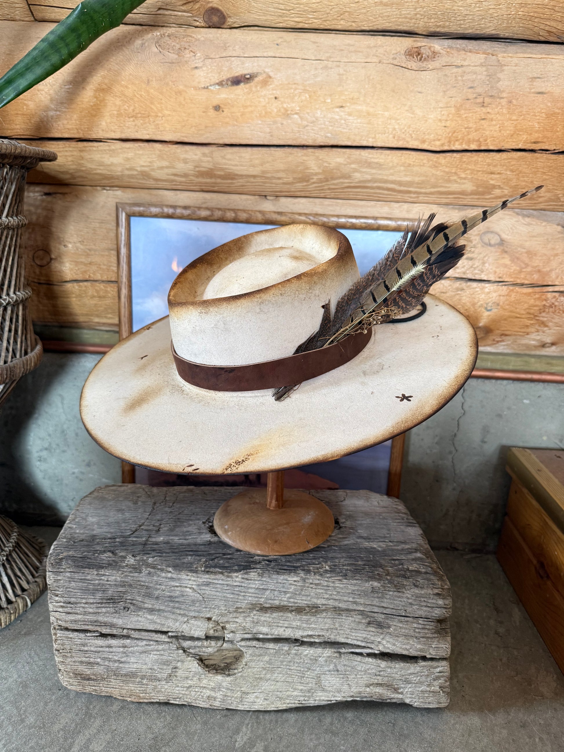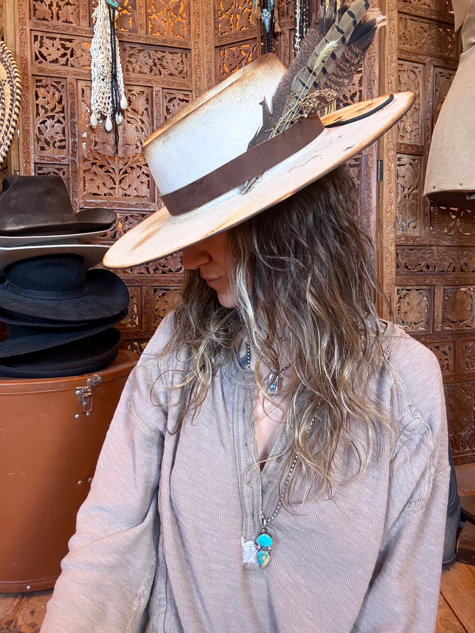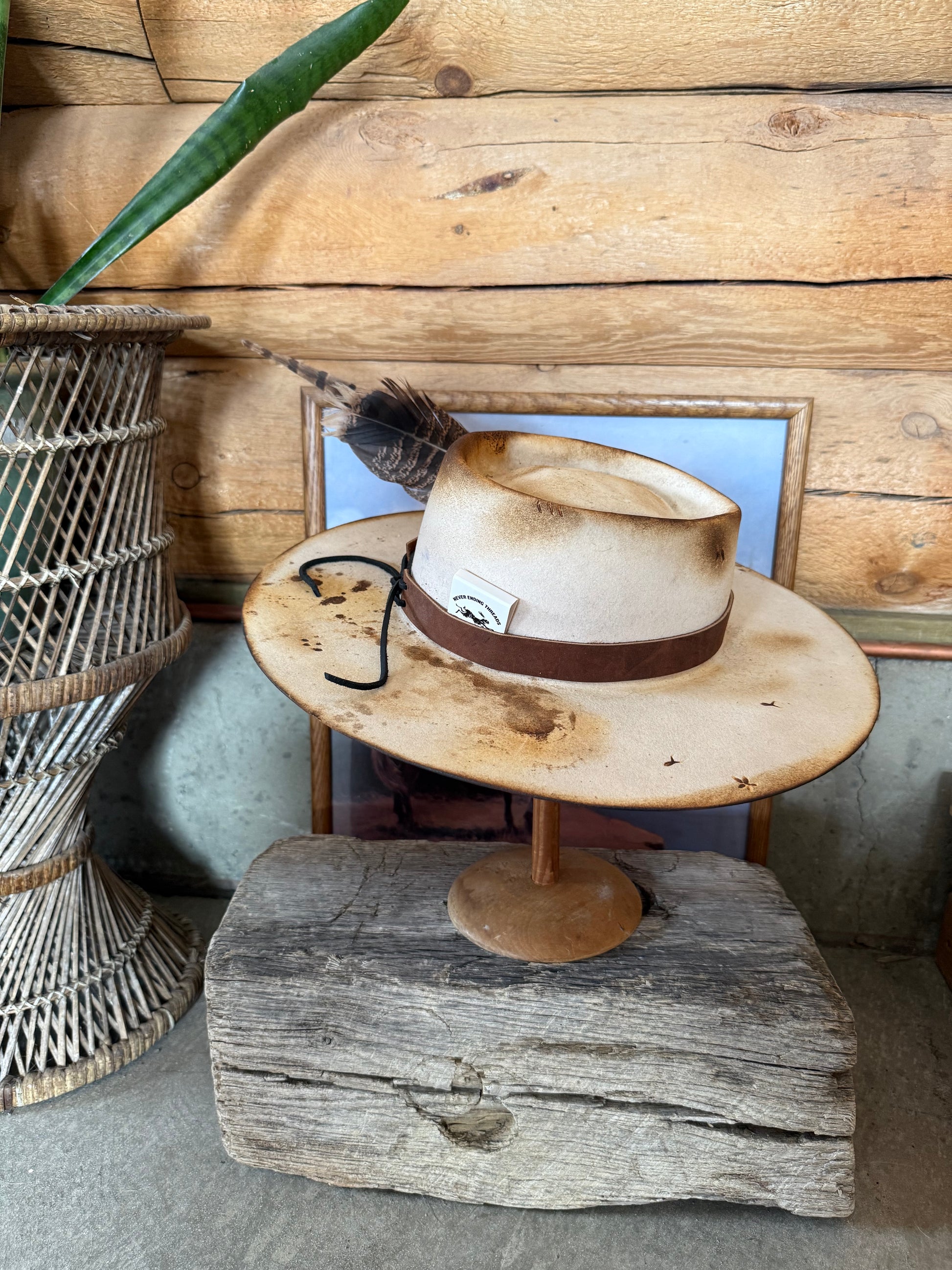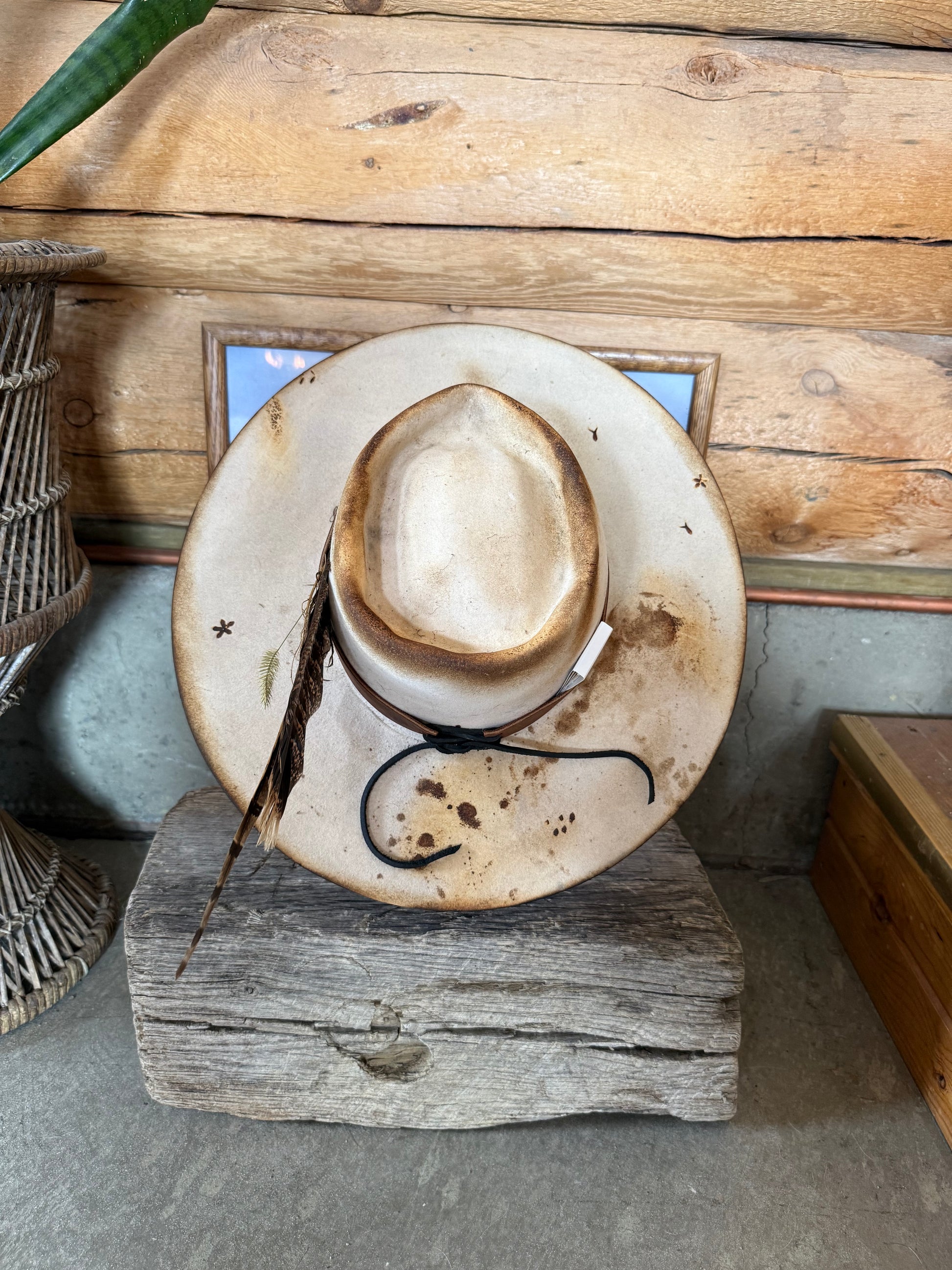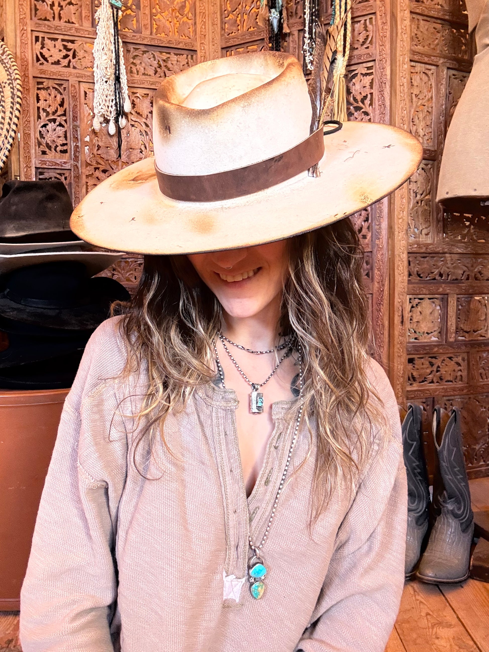•vintage distressed white cowboy hat
