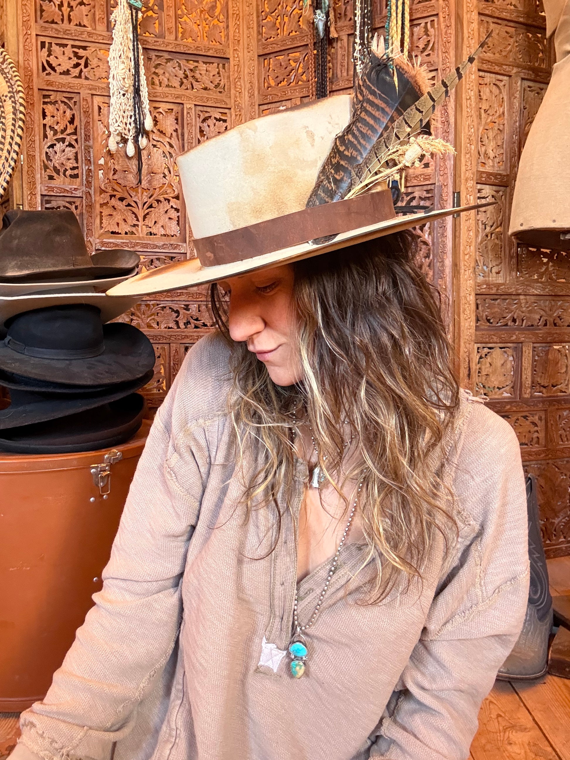 •vintage tan cowboy hat