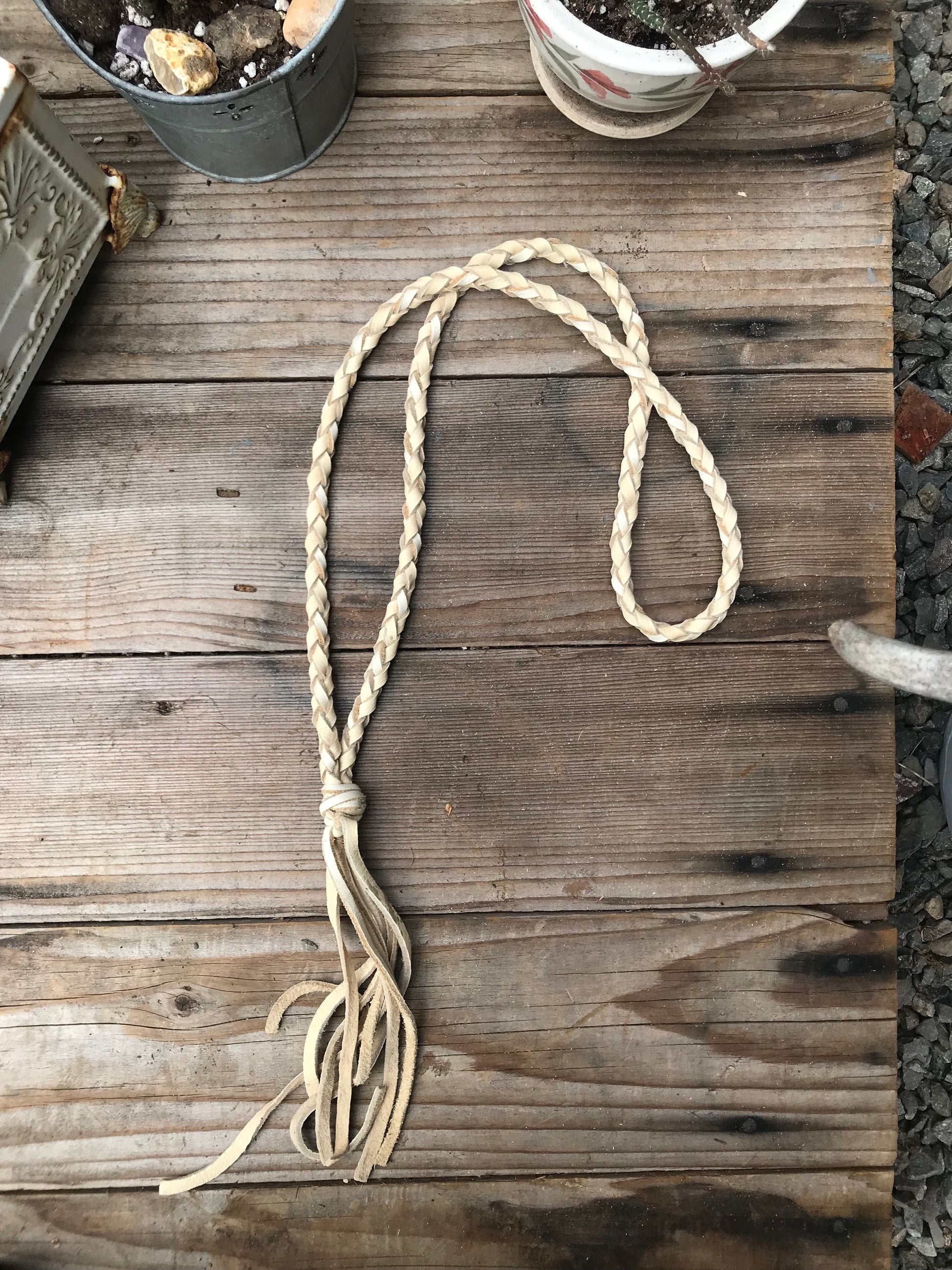 4 strand hand braided elk hide lace necklace. the perfect layer of fringe.