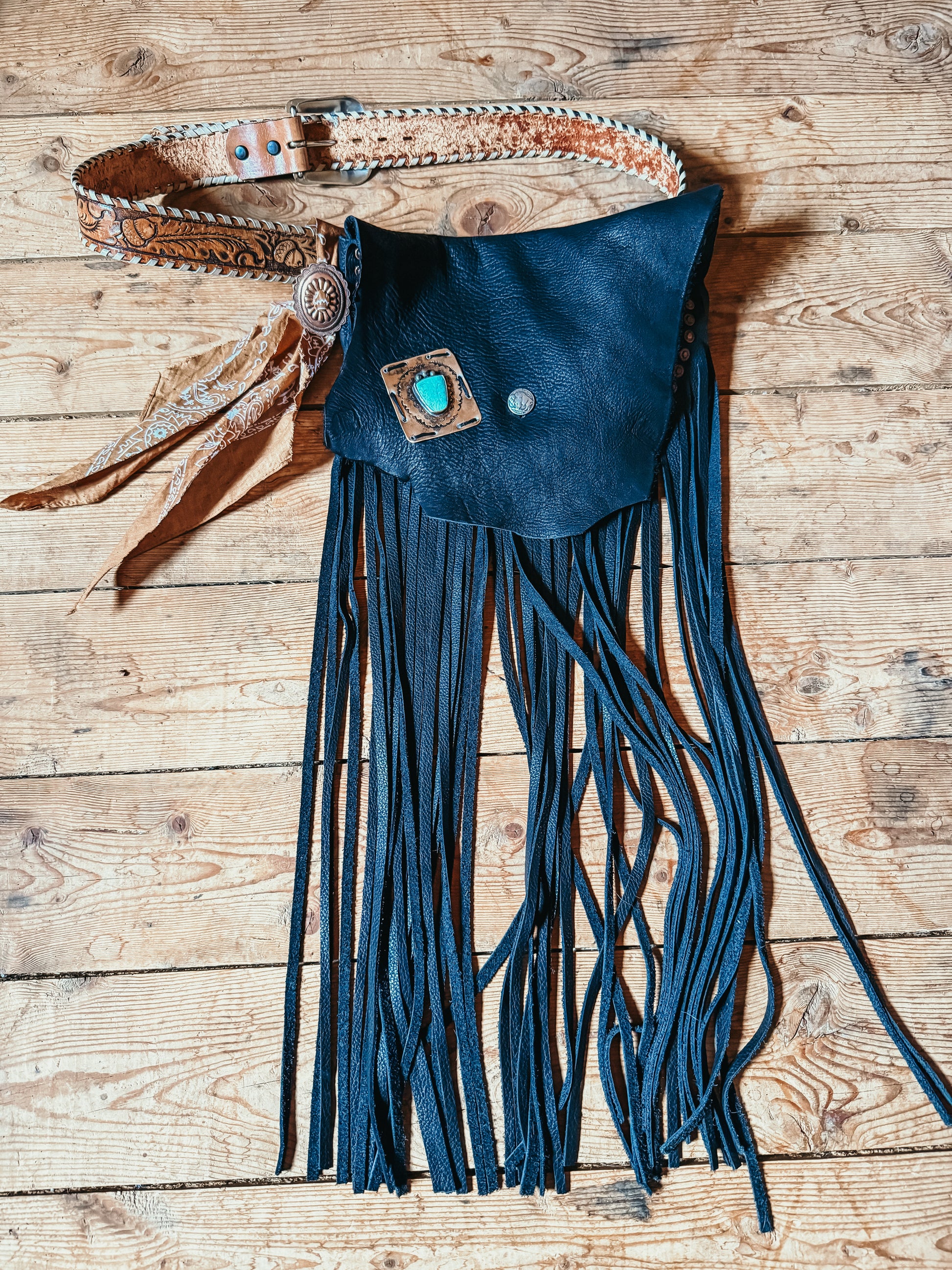 this is one bag that can be rocked 3 ways, over the shoulder, cross body or even as a fannypack. ready for any adventure you can dream of. strap is from a vintage belt and is adjustable.